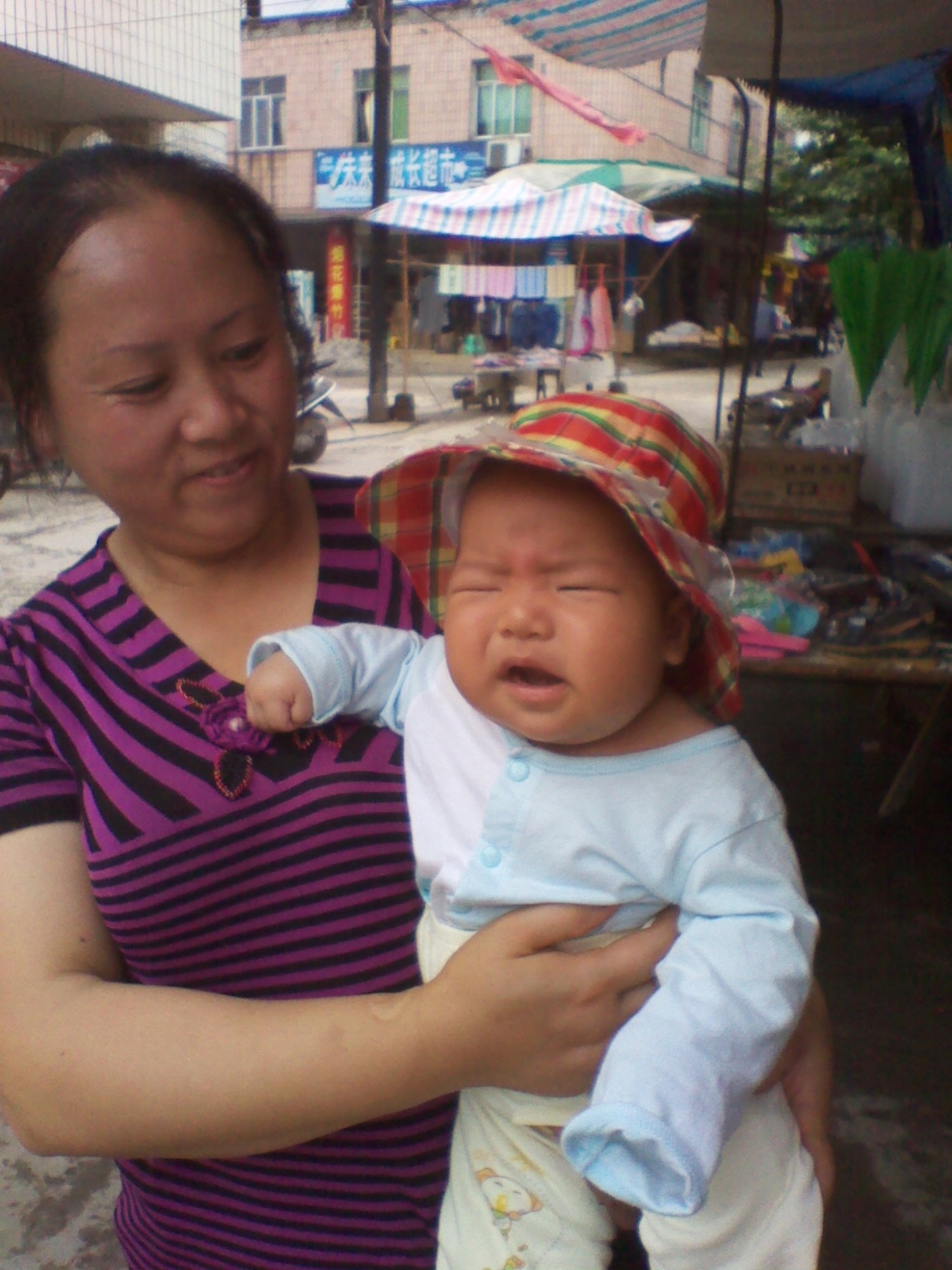 逛街有個(gè)寶寶走路摔了,他跑到前面去,走著走著,吧唧,趴下,嘴里還念念有詞:跩了,跩了…………