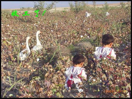 瓊娃子有些文化,用手機(jī)發(fā)短信比我快,是我在摘棉地見到唯一會發(fā)短信的。她說如果不是因為娘家妹妹多,輪不到她讀書,考高中畢業(yè)是沒問題的。建娃子告訴過我,他們來這里種棉就是要為女兒存下一筆錢,讓女兒多讀點書,做有文化的人。女兒長到三歲就送這里的鄉(xiāng)幼兒園,不行送包頭湖農(nóng)場幼兒園全托,到女兒上學(xué)的時候就不種棉,回老家。他們初步打算,明年再包100畝棉地。