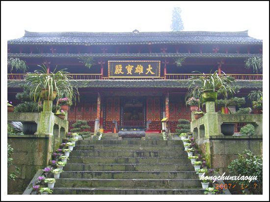 上個(gè)星期日,城區(qū)下小雨,蹬上雷音寺后,天上飛起了難得一見(jiàn)的雪花,我們汗淋淋蹬上純陽(yáng)殿之后,繞有興趣往前行,異口同聲說(shuō)出“觀(guān)光圣水閣”。在峨眉生活近30年,早有所聞的峨眉山“圣水”,一直沒(méi)有見(jiàn)過(guò),這一段山道平緩,我們加快步子。在通往圣水閣路上的觀(guān)景亭,相遇一個(gè)從圣水閣而來(lái),在此歇腳的大姐,真厲害,背30來(lái)斤水,每周都這樣。她告訴我們,峨眉城區(qū)很多人,在噴水池坐峨眉山管委會(huì)開(kāi)住五顯崗的通勤車(chē),在圣水閣下車(chē),有的人像她這樣取“圣水”,有的人在這里下車(chē)游覽圣水禪院,然后徒步純陽(yáng)殿,到伏虎寺停車(chē)場(chǎng)坐車(chē)返回城里。原來(lái),她這樣背水,比我們?cè)诟叨纯诒乘穆吠具h(yuǎn)。