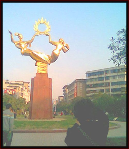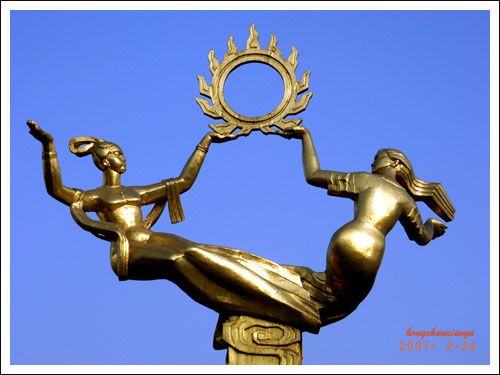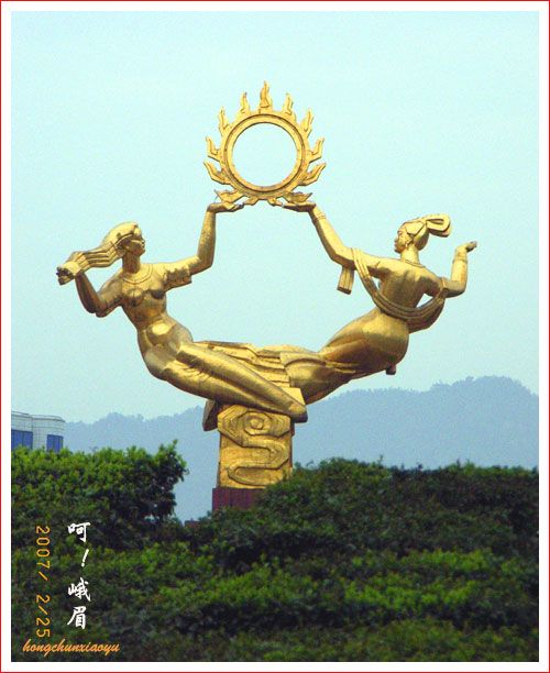 剛才看了圖片,自己禁不住對(duì)著電腦哈哈大笑,初七那天下午,我們?nèi)ピ缡诺娜脡炆霞漓?回家路過噴水池,峨眉山標(biāo)致塑像"美女托日出",在藍(lán)天下閃著金光,我立即打開相機(jī),尾隨的丈夫,用他的手機(jī)把我神態(tài)悄悄拍下來了,哈哈,回家一看,他拍的真不賴!其實(shí)呀,不瞞你說,我的這點(diǎn)攝影興趣和水平,都是在他的鼓勵(lì)和支持下學(xué)的!