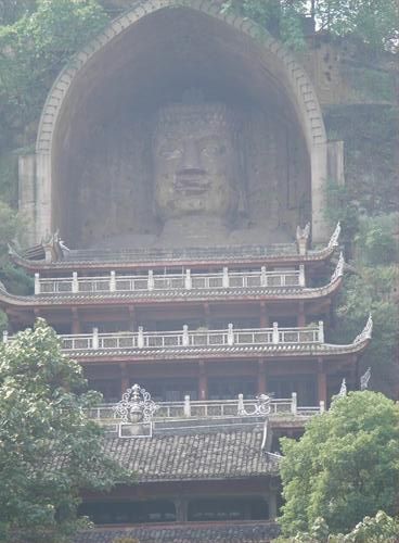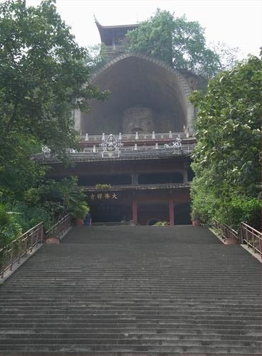大佛寺宋代重修后規(guī)模很大,寺門抵今溪岸。明末清初寺廟毀于兵火,清嘉慶年間重建。以后時(shí)有修繕和擴(kuò)建,因受地形限制,寺廟只能依山就勢(shì);縮退山門,以大佛為中心向左右兩邊展開(kāi),主要由大雄寶殿、觀音殿、地藏殿、達(dá)摩殿、羅漢堂、藏經(jīng)樓、方丈室、禪房等殿堂組成。山下遠(yuǎn)望撣林;古剎錯(cuò)落有致。清末民初,寺內(nèi)香火極為旺盛,鄰近州縣的善男信女,或上朝峨眉山,或下朝寶頂,必經(jīng)榮縣朝大佛。解放前后,年久失修,寺廟有所損毀!啊酢酢酢敖Y(jié)束后,國(guó)家撥?钊婢S修寺廟,廣植樹(shù)木。
