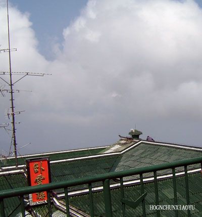 聽兒子在那邊驚奇的叫起來:叔叔、阿姨、媽媽、牛妞(兒子的女朋友)快過來看,我們急忙跑過去,憑欄俯視,深壑下飄逸星星點點,兒子興奮的手舞足道:看見了嗎?峨眉山市區(qū),還沒有我的手掌大呢,那條公路細得像老太太的白發(fā)絲絲,看見了,看見了,果真是“城郭依稀大如掌,翠微隱約小于細”(出自明代梁應龍詩句)。咦,就眨眼的功夫,騰起直升的霧,把深壑填滿,什么也看不見了。