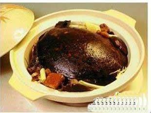 鐵板甲魚:將鮮活的甲魚放在有調(diào)料的涼湯中用慢火煨。甲魚是活的,當(dāng)水漸漸升溫后,甲魚就會因為熱而喝湯,調(diào)料自然就進(jìn)入了甲魚的體內(nèi)。漸漸火越來越熱,看著鍋中甲魚痛苦的翻滾,舉箸之人無不興奮異常。最后甲魚熟了時,外面的湯和甲魚喝下的湯,使甲魚肉味中都有湯的味道,據(jù)說鮮美無比。