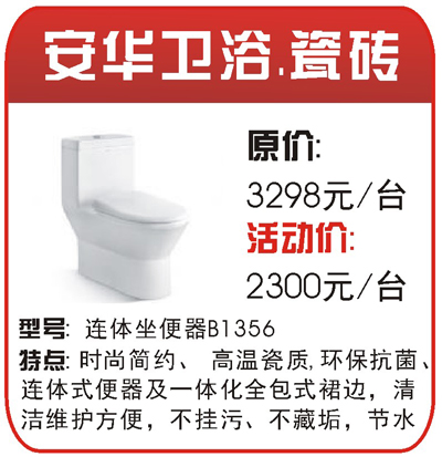 安華衛(wèi)浴連體坐便器B1356現(xiàn)場(chǎng)價(jià):即將揭曉