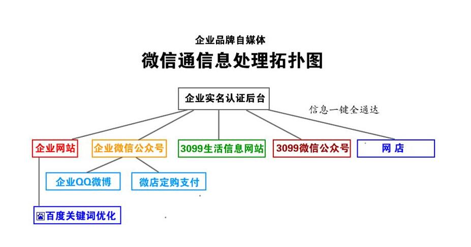 企業(yè)網(wǎng)站 + 企業(yè)實(shí)名認(rèn)證后臺(tái) + 微店 + 網(wǎng)店+企業(yè)微信公眾號(hào) + 3099微信公眾號(hào) + 3099生活信息網(wǎng)站 = 企業(yè)自媒體微信通