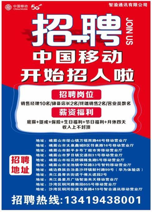 2000-8000元/移動營業(yè)廳招聘儲備干部/營業(yè)員/銷售經(jīng)理