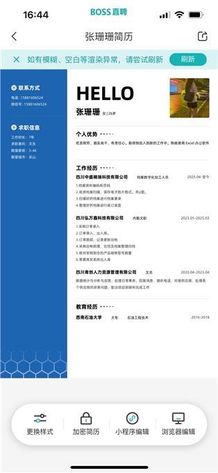 點(diǎn)擊查看完整號碼 (查看1條簡歷電話現(xiàn)金0.3元或30個(gè)金幣)